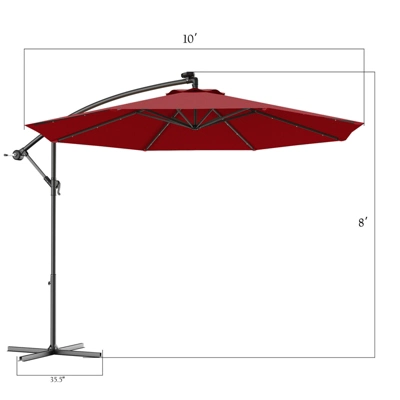 Tangkula 10′ Patio Solar Umbrella LED Sun Shade Offset W/Base