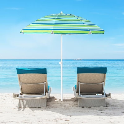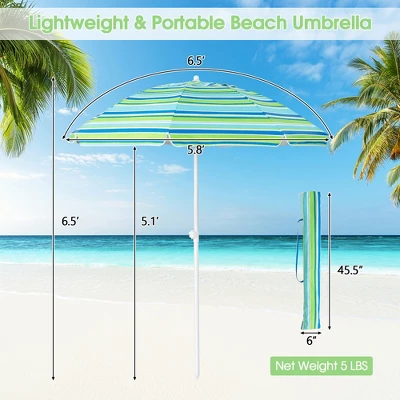 - Equipped with a removable sandbag, this holiday outdoor umbrella enhances wind resistance by weighting the bottom, making it less likely to tip over when used at the beach. And the umbrella is supported by 8 strong fiberglass ribs to ensure good sturdiness and stability.