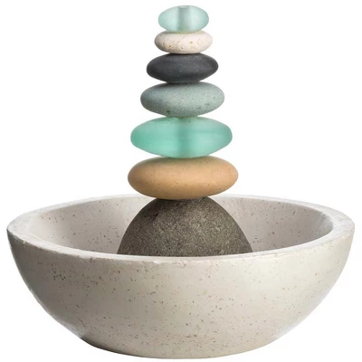 Soothing waters stream down this fountain’s colorful stones and recycled glass bringing peace to your surroundings. Handcrafted in Indonesia, each stone is carefully chosen and securely placed atop a white marble basin. Representing safety, hope and friendship, cairn stones have been used by cultures around the globe for centuries. Whether serving as a memorial stone or a directional marker, cairn stones add a sense of balance and calm to the hectic pace of daily life.